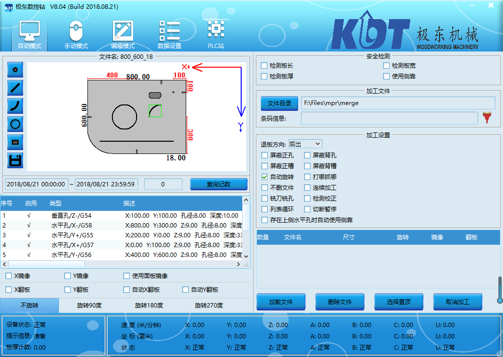 主要功能有: 1. 自动扫码加工,通过条码扫描可以自动导入拆单设计的加工文件,实现对拆单软件的无缝对接,无需编辑板件,减少出错率和提高加工效率。