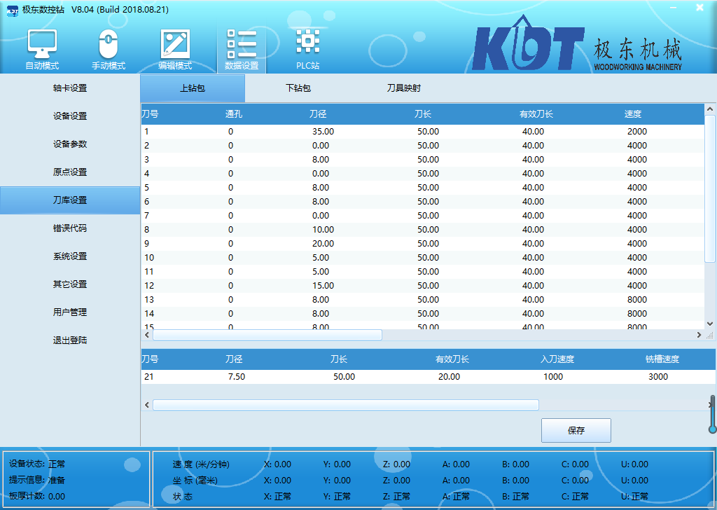 设置机器的一些参数,比如原点,刀库,用户管理等功能。